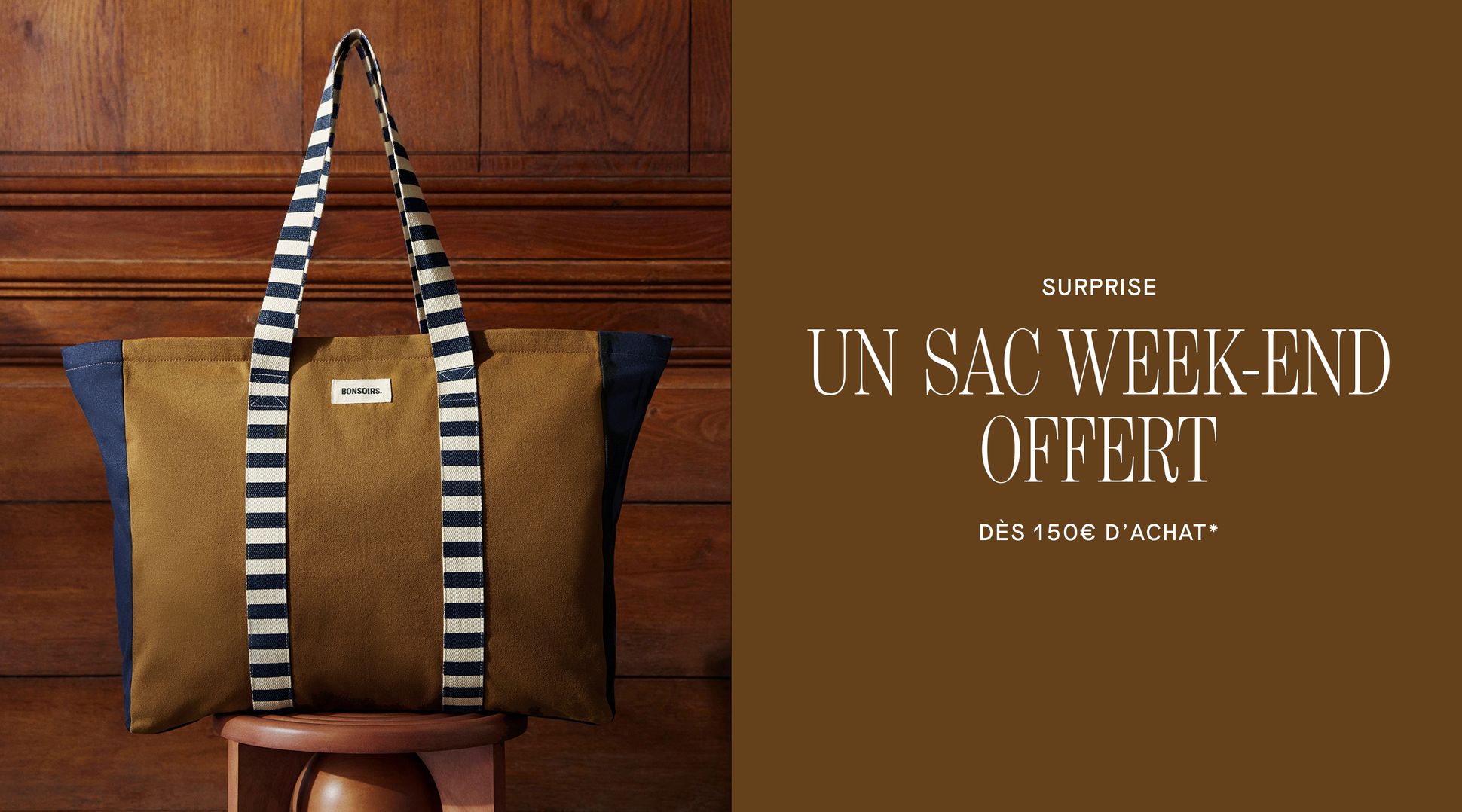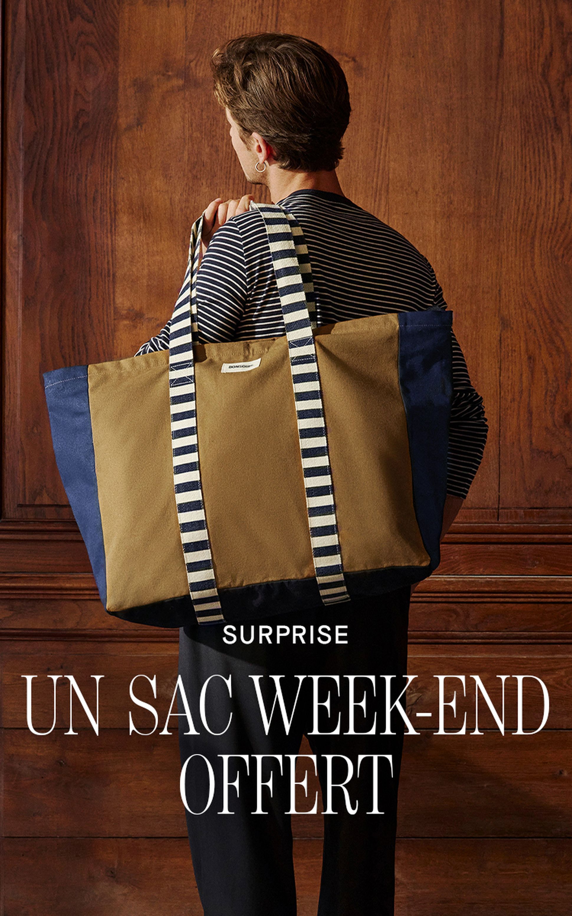 *Unsere große Bonsoirs-Weekend-Tasche wird ab 150€ in deinem Warenkorb gratis angeboten. Nur im E-Shop und solange der Vorrat reicht. Weitere Informationen in unseren AGB.