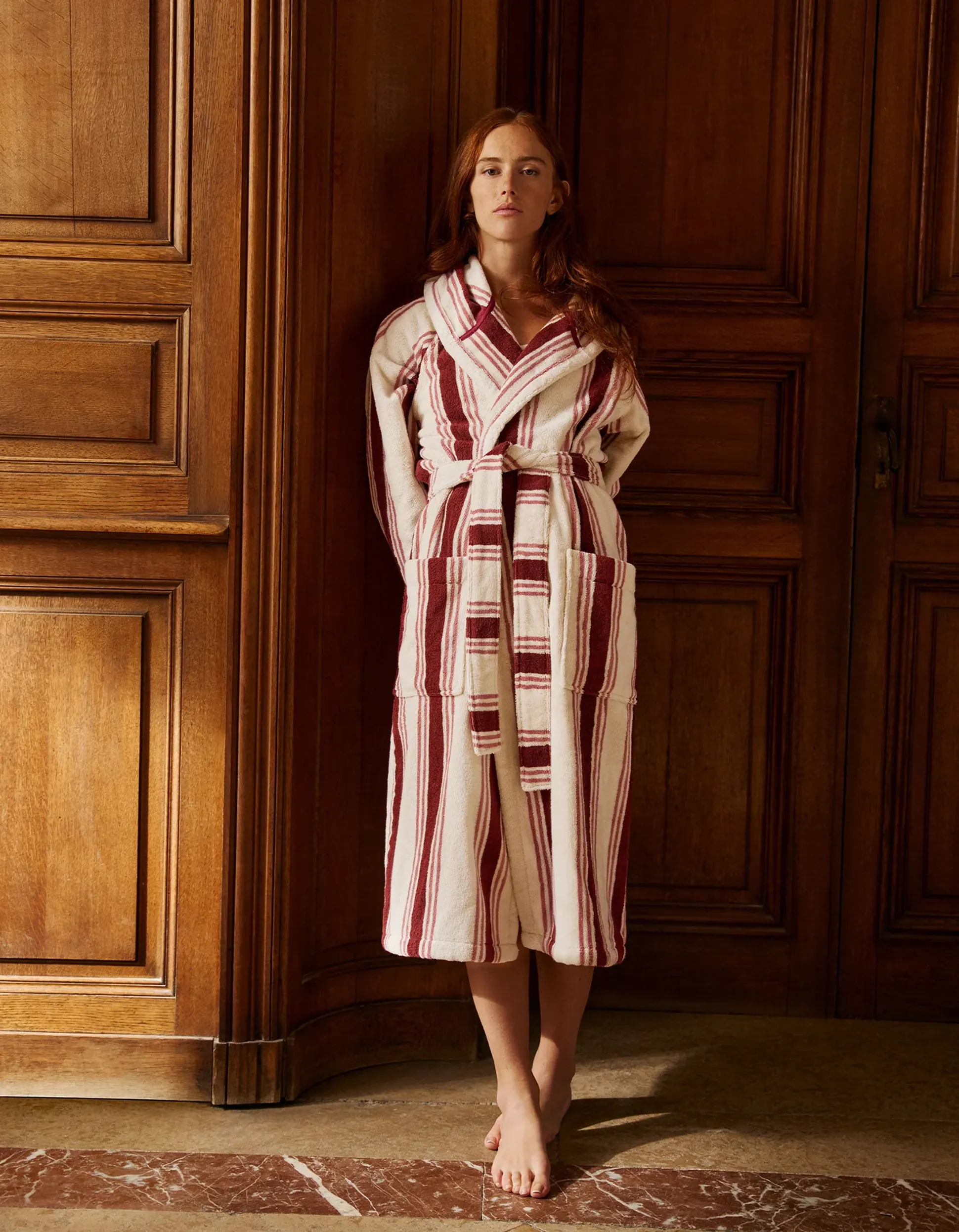 Même coupe ajustée et confortable, avec la même recommandation : en cas de doute, choisissez la taille en dessous. Nos peignoirs sont unisexes.