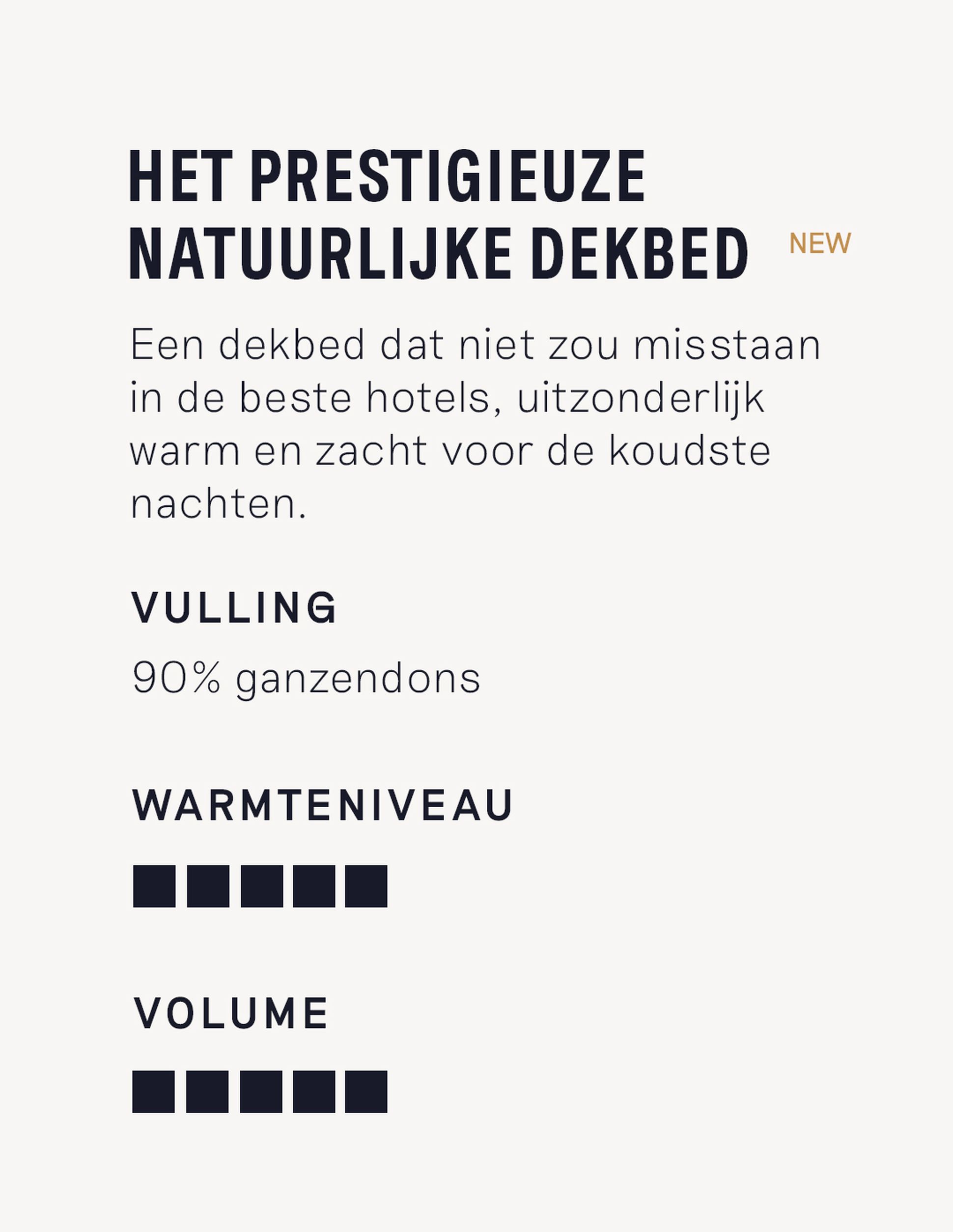 Natuurlijk dons is een uitstekende keuze voor luxe dekbedden. Voor onze collectie gebruiken we 100% Frans eendendons, volledig traceerbaar en diervriendelijk. Het dons is licht, comfortabel en ademend, en biedt uitstekende warmte-isolatie voor een rustige nachtrust.