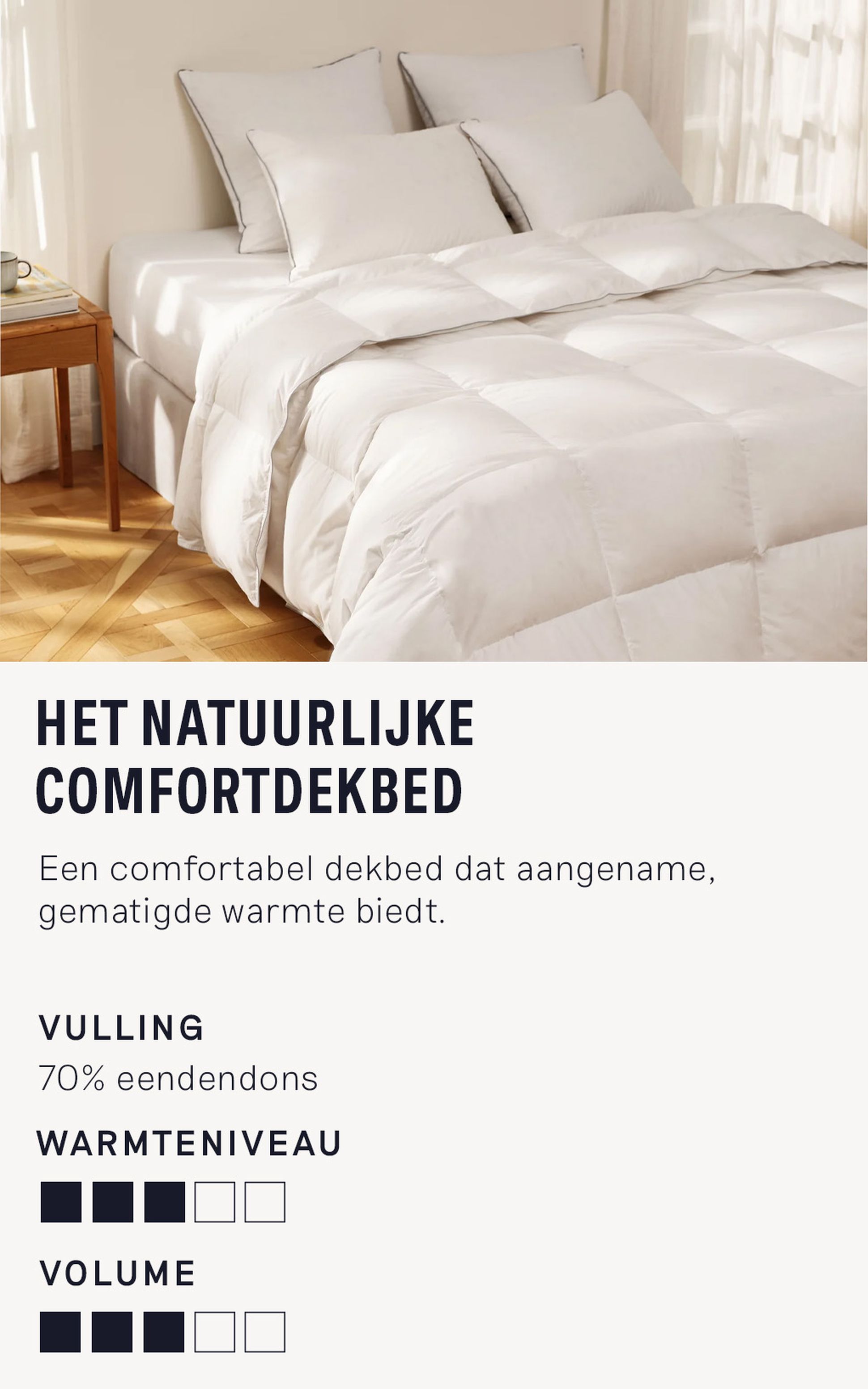- Ganzendons, bekend om zijn hoogwaardige kwaliteit, omhult je met een zachte warmte zonder te zwaar aan te voelen.